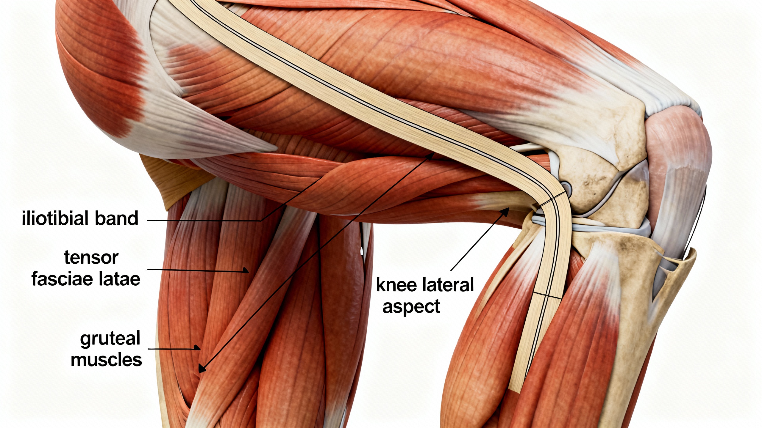 IT 밴드(Iliotibial Band, 장경인대)는 엉덩이 근육(대퇴근막장근, 둔근)에서 시작해 허벅지 바깥쪽을 따라 내려와 무릎 바로 아래 정강이뼈에 부착되는 두껍고 강한 섬유 조직입니다. 이 조직은 우리가 걷거나 달릴 때 무릎 관절의 바깥쪽을 안정시키는 매우 중요한 역할을 수행합니다. 마치 자동차의 현수막처럼, 다리의 움직임을 제어하고 지지하는 핵심 구조물 중 하나라고 생각할 수 있습니다.