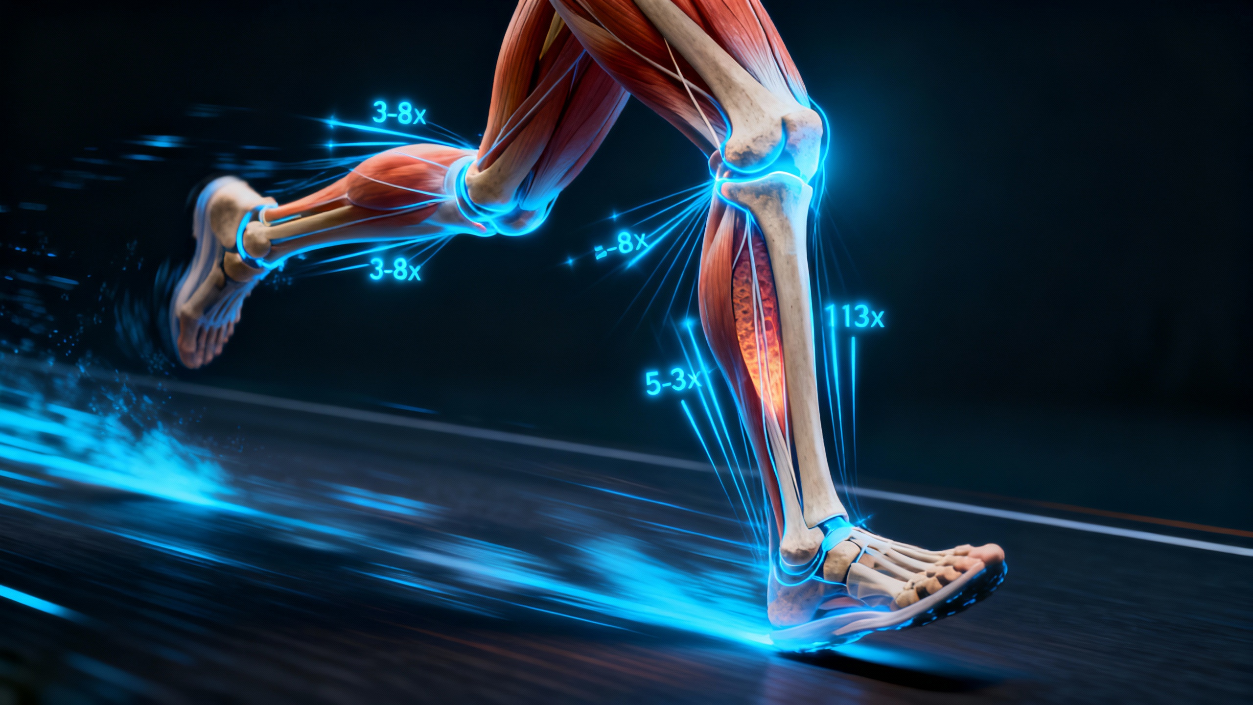 우리가 가볍게 달리는 순간에도 무릎과 발목 관절은 엄청난 압박을 받고 있습니다. 연구에 따르면, 러닝 시 무릎 관절은 체중의 3~8배, 발목 관절에는 무려 5~13배에 달하는 충격 부하가 가해집니다 [Chen et al., Gait & Posture, 2023]. 이는 평범한 보행 시의 2~3배에 해당하는 수치로, 이러한 충격이 수천, 수만 번 반복되면 연골의 퇴행성 변화나 인대 손상 위험은 기하급수적으로 증가합니다. 특히 훈련량이 많은 중급 이상의 러너일수록 누적 충격으로 인한 미세 손상(Microtrauma) 관리는 필수적입니다.